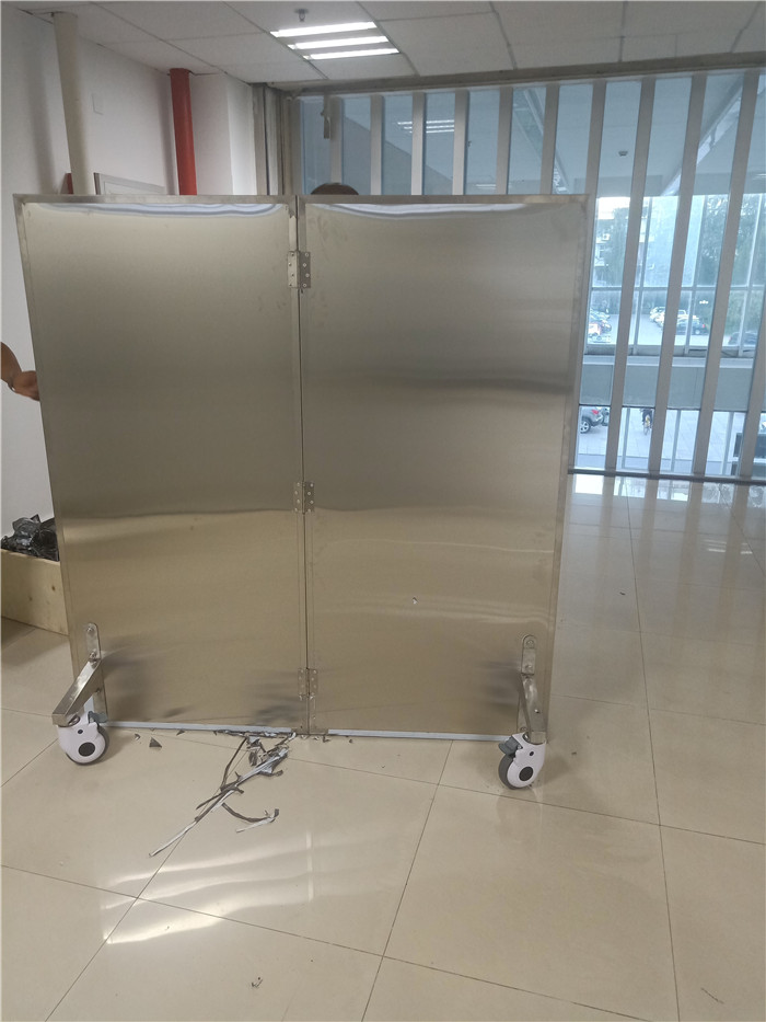 铅屏风饰面采用多种金属材料,内填充铅板制作,移动轮设有刹车装置,使用方便,隔离射线稳定!规格尺寸及铅玻璃透明视窗可定制!